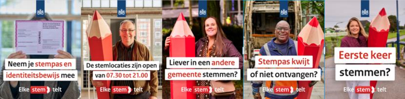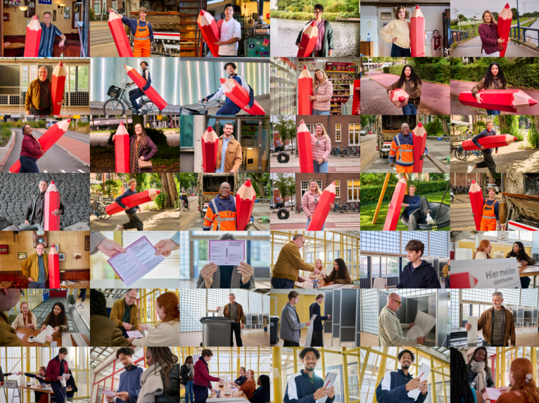 Daarnaast zijn ook verschillende campagnebeelden beschikbaar, voor bijvoorbeeld op een website. Er zijn foto's gemaakt met het herkenbare rode stempotlood, en foto's die gemaakt zijn in- en rondom een stemlokaal.