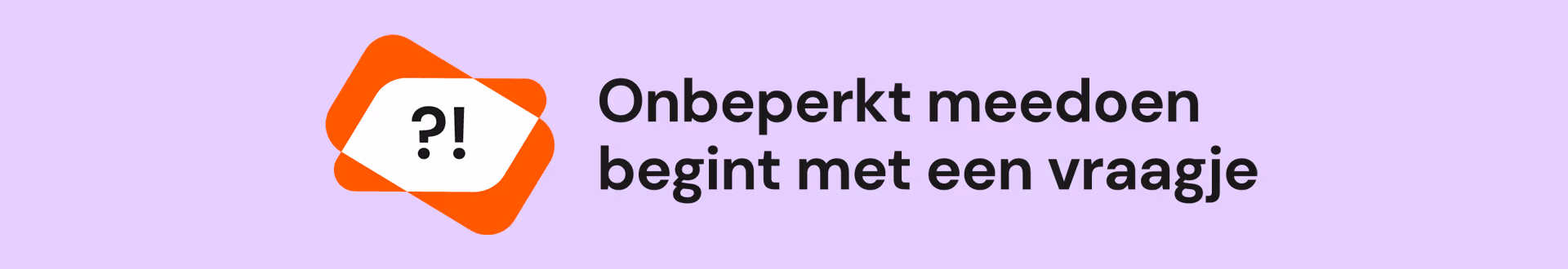 Iedereen moet kunnen meedoen! Voor veel mensen is dat niet altijd mogelijk omdat de samenleving hen drempels oplegt in het dagelijks leven. Samen kunnen we Nederland toegankelijker maken. Door het gesprek aan te gaan ontdek je welke stappen we moeten zetten. Zo’n gesprek starten is niet altijd makkelijk. ‘Vraagje?!’ helpt je op weg. Zo begint onbeperkt meedoen met een vraagje.